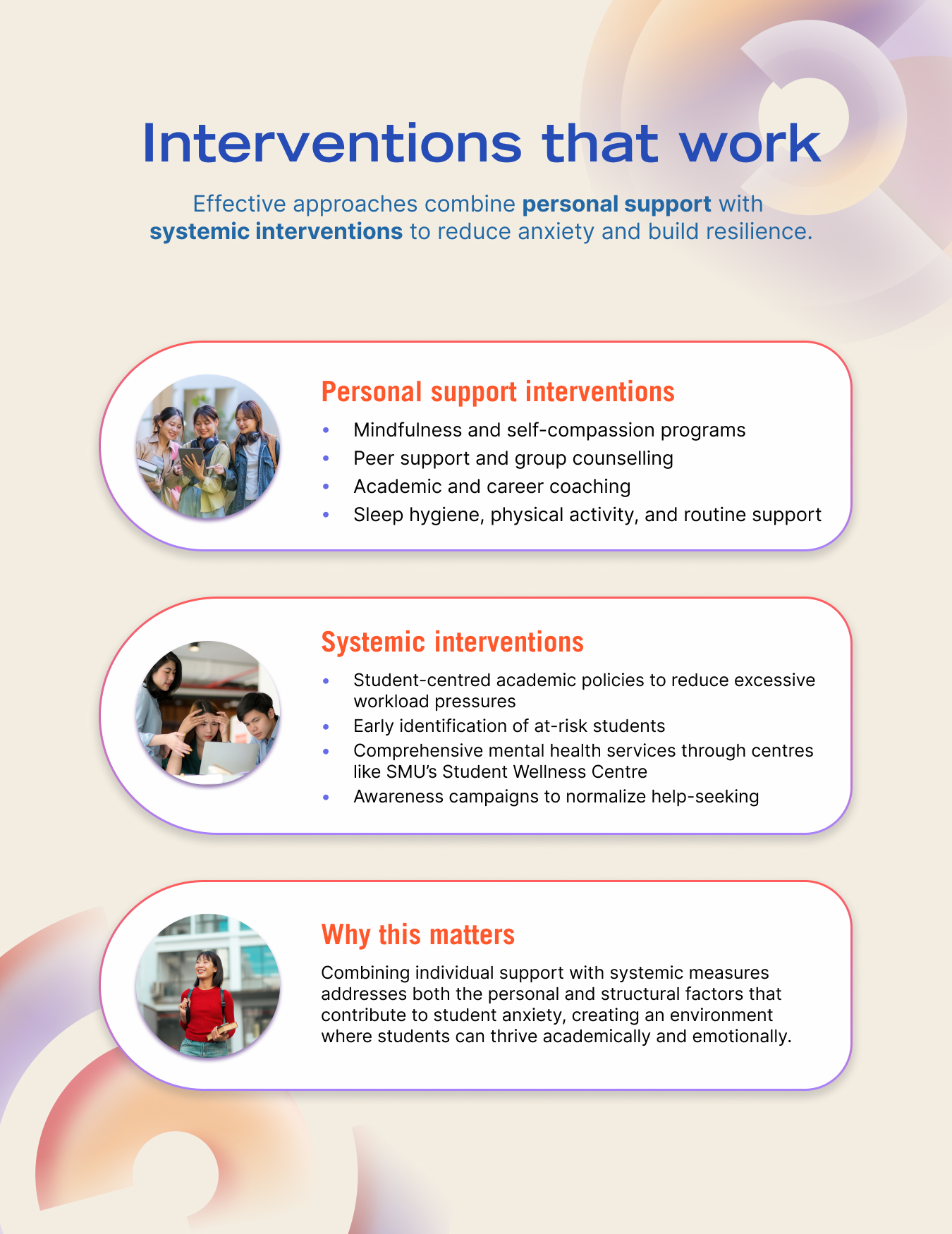 So the question becomes, what types of interventions have been most effective in reducing anxiety among college and university students? And what can educational institutions do to address this increase in anxiety?