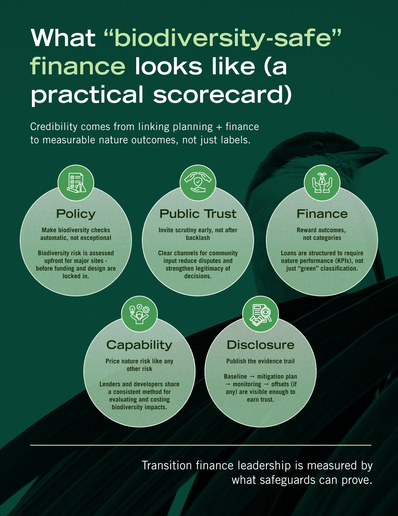 - To ensure credible leadership in transition finance, Singapore must adopt a unified, transparent biodiversity protection framework that aligns development, regulation, and finance with genuine ecological outcomes.